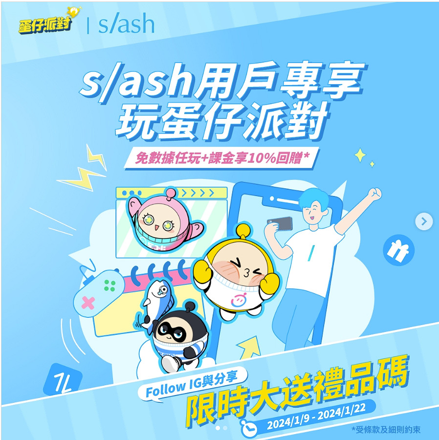 蛋仔派對 x s/ash 限時大派禮品碼 【先到先得 送完即止】! 上s/ash Instagram完成簡單任務就可以拎到蛋仔派對限定禮品包😍快d分享給朋友仔一齊玩! 傳送門: https://bit.ly/47opX1P