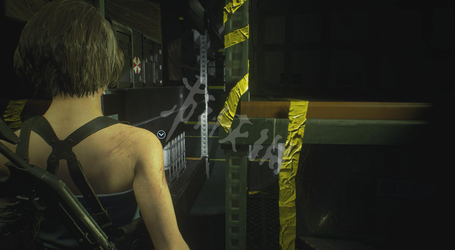 從平台的梯子下去,左側的鐵櫃會掉下來擋住去路,右側進去可以拿到些手槍子彈。