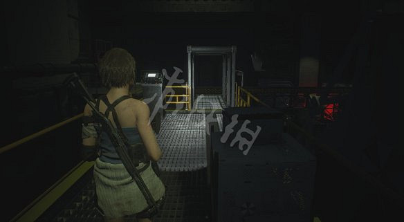 穿過中間的過道來到升降台區,一側的汽車旁可以拿到炸藥B升降台一路往下來到新區域。