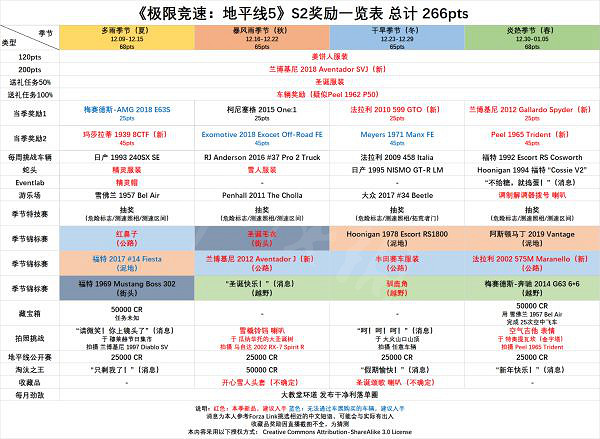 S2季節賽獎勵是什麽?第二賽季即將到來,不少玩家想要了解第二賽季有哪些獎勵可以獲取,下面小編就帶來極限競速地平線5S2季節賽獎勵介紹,一起來看看吧。極限競速地平線5S2季節賽獎勵介紹 廣告 說明:紅色:本季新品,建議入手 藍色:無法通過車展購買的車輛,建議入手。以上就是極限競速地平線5S2季節賽獎勵介紹的相關介紹,想要了解更多相關攻略的玩家可以持續關注,這裡每天會為大家推送最新最全的攻略,一定不要錯過哦。來源:遊俠網