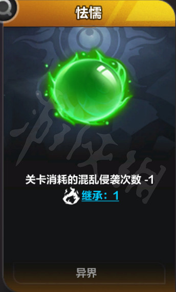 當每一輪的混亂侵襲次數消耗完後,位面就會自動進入新的一輪混亂侵襲(每輪侵襲次數:5次可通過人格-正直混亂-怯懦卡牌降低消耗侵襲次數)。