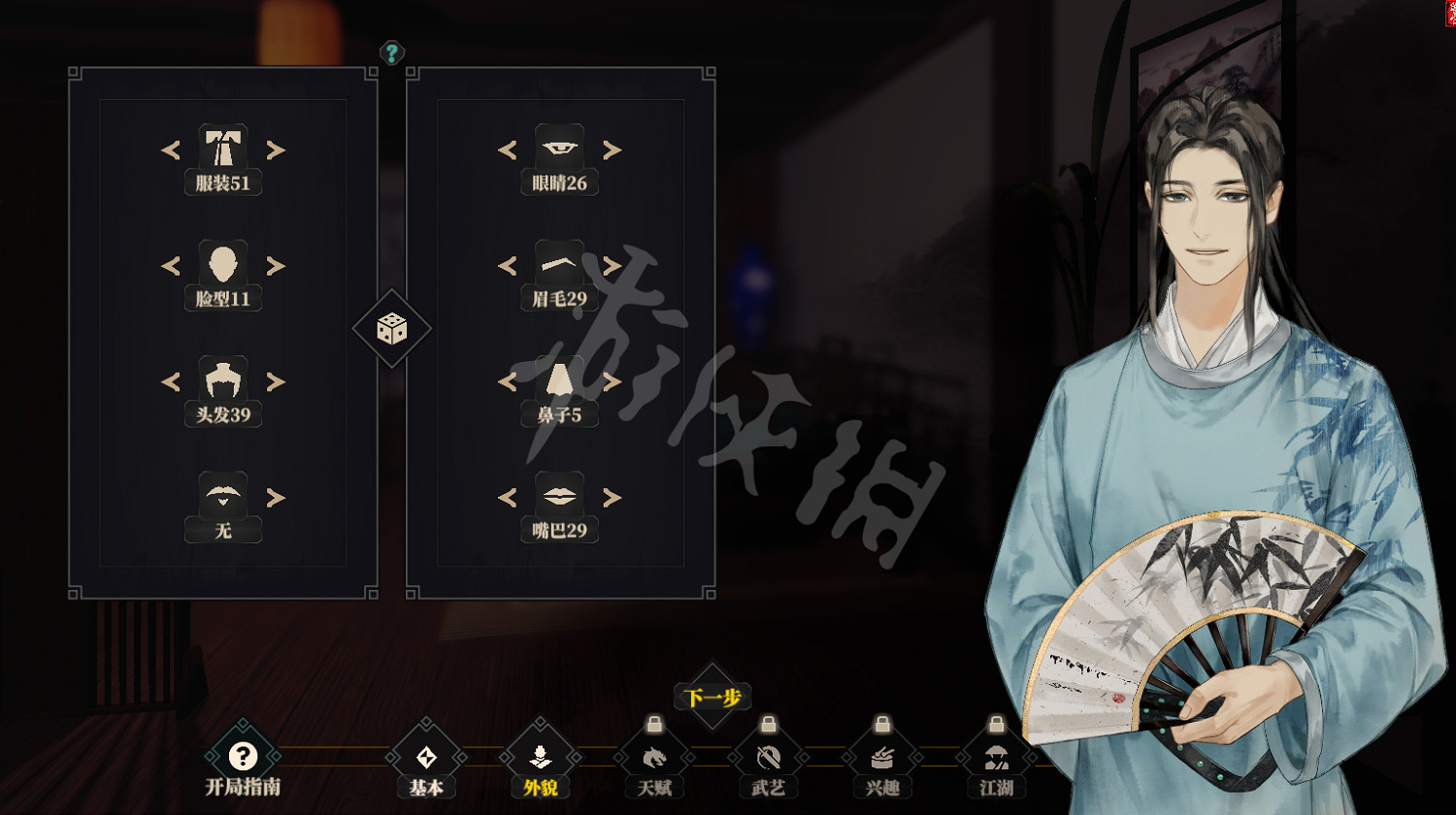 主角是由玩家自己創造的,一如既往是江湖小蝦米,出身的設定也是玩家自己設定的,並沒有詳細介紹主角的身世來歷。