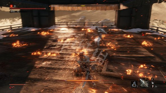 一字斬·二連(火焰):葦名流蓄力下劈二連斬,第一下帶火焰效果,第二下可能變成橫斬且固定帶爆炎效果。