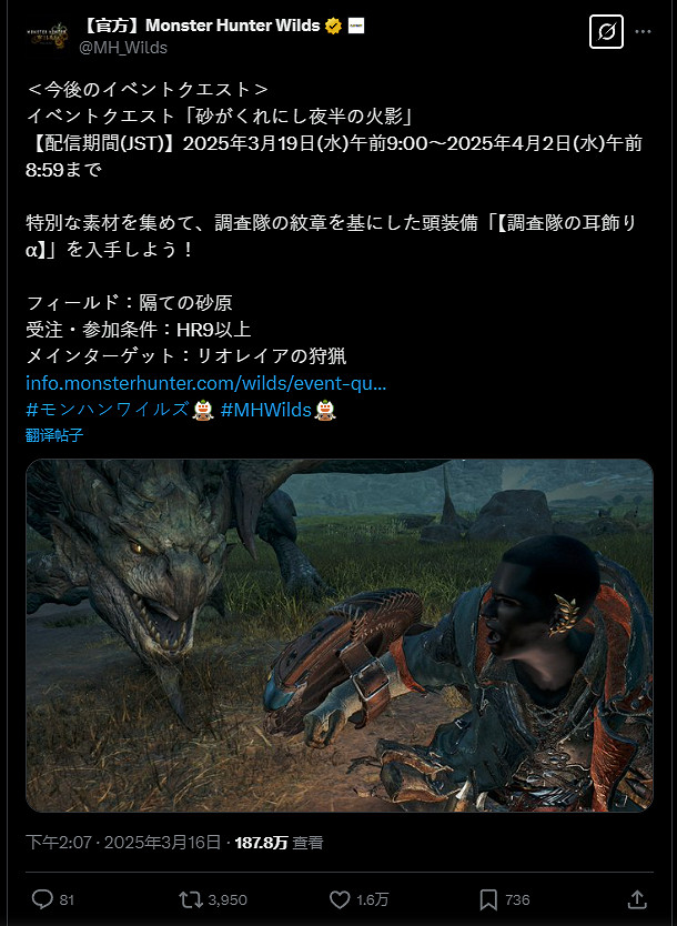 總之,這次的活動任務不僅帶來了新的裝備,還為玩家提供了更多的挑戰和樂趣。準備好迎接新的狩獵任務了嗎?