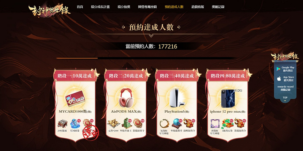 達成 10 萬、20 萬、40 萬、80 萬的不同預約階段目標,將解鎖豐厚的里程禮包!還將有機會獲得抽取MYCARD 1000點、Airpods MAX、PlayStation5、IPHONE 12 pro max 512G等豪華獎勵!