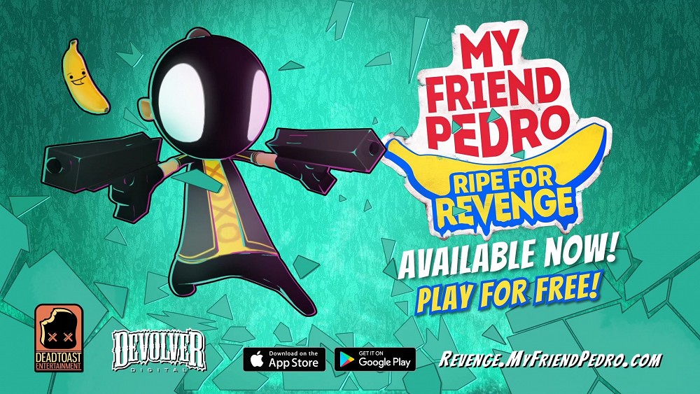 在 Steam 上大殺四方、以微笑香蕉的形象讓人記憶深刻的遊戲《我的朋友佩德羅(My Friend Pedro)》將在手機雙平台獻上他們夢幻的血色芭蕾!開發團隊 DeadToast 與世界知名獨立遊戲開發商 Devolver Digital 聯手出擊,《我的朋友佩德羅:蕉仇必報(My Friend Pedro Ripe for Revenge)》於今(6)日登上 Android 與 iOS 商店,目前已開放免費下載,在炎炎夏日來場滿載鮮血、子彈與香蕉的冒險行動!