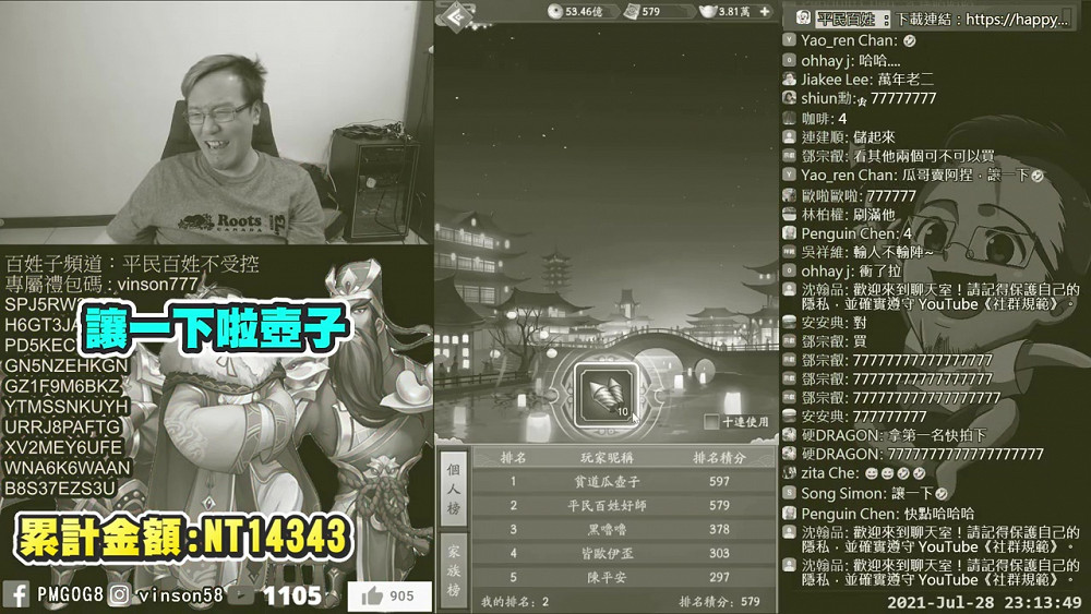 其中知名遊戲玩家平民百姓在實況之前,為了表明決心,就在個人社群及實況的封面上公開揚言自己將會衝擊伺服器的榜首;誰知竟然在實況中被等候已久的狂熱粉絲多次攔截,令百姓在衝擊第一的路上屢次受挫!
