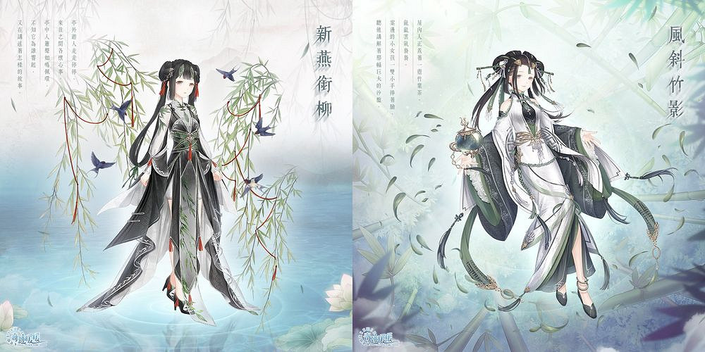 全新套裝「新燕銜柳」(左)與「風斜竹影」