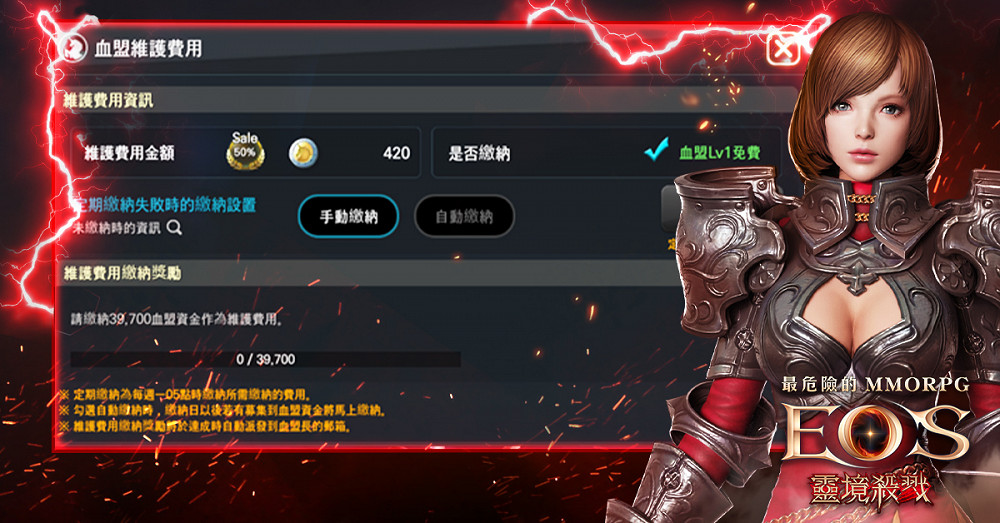 《靈境殺戮》繳納血盟維護費用就可獲得血盟增益效果,別忘記繳納喔