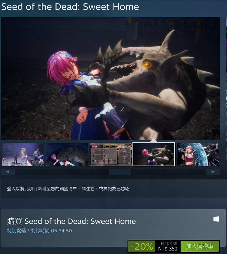 TeamKARMA打造的《死亡種子:甜蜜家園》(Seed of the Dead: Sweet Home)已於8月28日在Steam上發售,遊戲售價新台幣438元,現在促銷僅售350元。該作支援中文,在Steam上總評為 “特別好評” 。