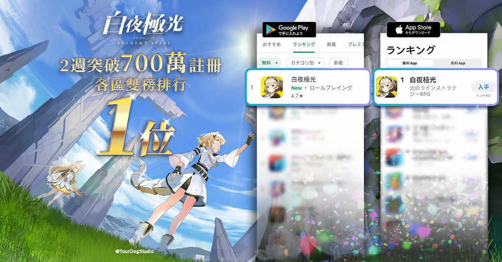 《白夜極光》全球多區雙榜第一,2週超過700萬註冊玩家