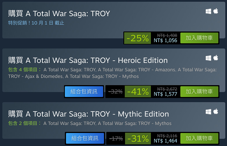昨日(9月3日),由Creative Assembly工作室開發的《全軍破敵傳奇:特洛伊 (A Total War Saga: TROY)》Epic獨佔結束正式上線Steam,目前Steam中國本體原價新台幣1056元,目前在Steam收獲87個評測,總體評價為褒貶不一,感興趣的玩家可以點擊此處進入商店頁面。