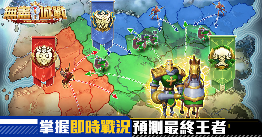 《無盡城戰》Contention of Legends三方對抗活動熱烈開跑,想知道最新的戰況可透過活動頁( https://infinitykingdom.gtarcade.com/zh/col )了解即時的戰爭資訊,而在活動期間內也有預測活動,快去猜猜三方戰局誰將成為最終王者?