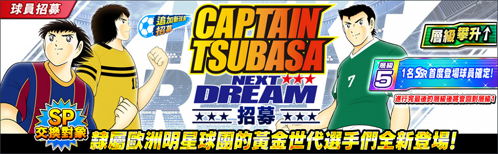 推出登場新球員「大空翼(加泰隆尼亞(NEXT DREAM))」、「早田誠(不來梅(NEXT DREAM))」、「新田瞬(多特蒙德(NEXT DREAM))」的SP交換對象(※有天井)招募!