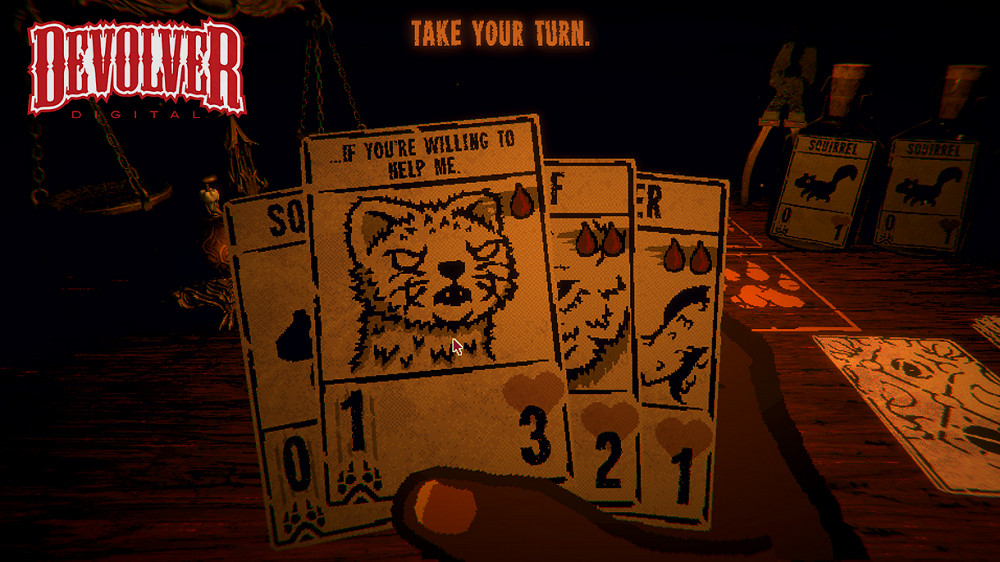 淋漓展現了開發團隊對遊戲狂熱愛戀的《賭命牌卡》,是一款以卡牌遊戲為基礎的黑色系史詩,混合類地下城的牌組建構機制、逃脫解謎和心理恐懼等要素,宛如一杯絲滑順口但以鮮血點綴的刺激奶昔。遊戲將在 2021 後半年以 PC 版本上市。玩家將陷在一個陌生虐待狂所營造的困境之中,你只知道他名為 Leshy,他要求你透過工藝、手術,甚至自殘來湊齊一副以叢林生物為題的牌組,藉此一探他小木屋牆後更深層的秘密。