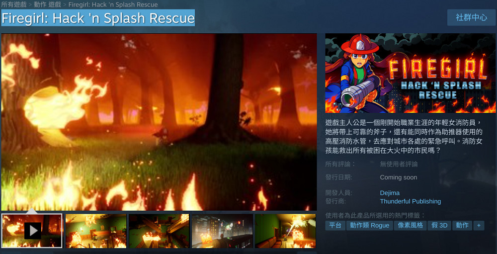 Dejima工作室開發《消防女孩(Firegirl: Hack 'n Splash Rescuea)》Steam頁面現已上線,該作支援中文,發售時間未知,感興趣的玩家可以點擊此處進入商店頁面。