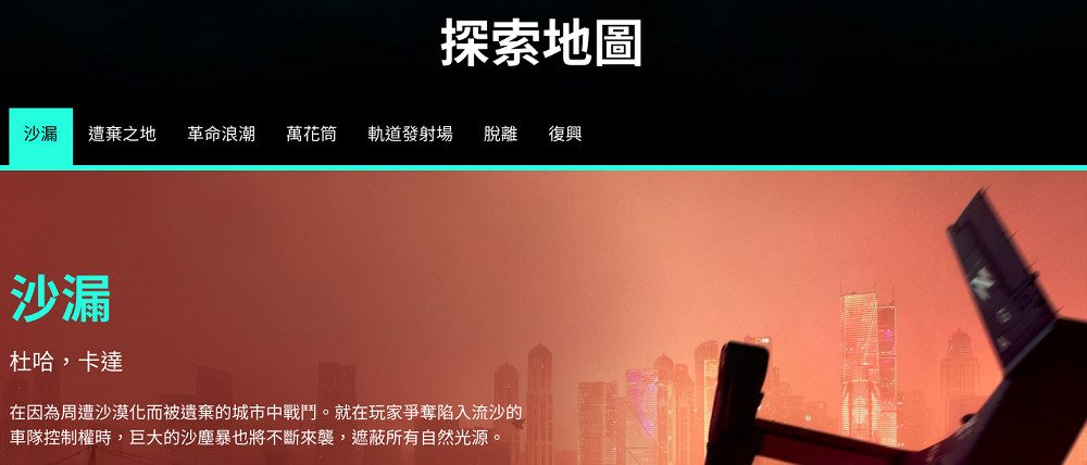 《戰地風雲2042》首發共有7張地圖,分別是沙漏,廢棄之地,貨物倉單,萬花筒,航天發射中心,分崩離析和涅槃。其中涅槃設定在埃及的東部沙漠,分崩離析設定在南極洲的莫德女王之地,而廢棄之地設定在印度的Alang。