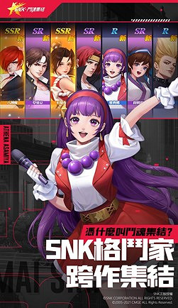 《SNK-鬥魂集結》是一款集結了SNK旗下知名IP的卡牌RPG,收錄了多部充滿老玩家回憶的經典遊戲角色,他們將在《SNK-鬥魂集結》齊聚一堂,互相較量。草薙京、八神庵、特瑞‧博加德、楓、霸王丸,上場的每一位角色都是明星,這才叫做名符其實的鬥魂集結!