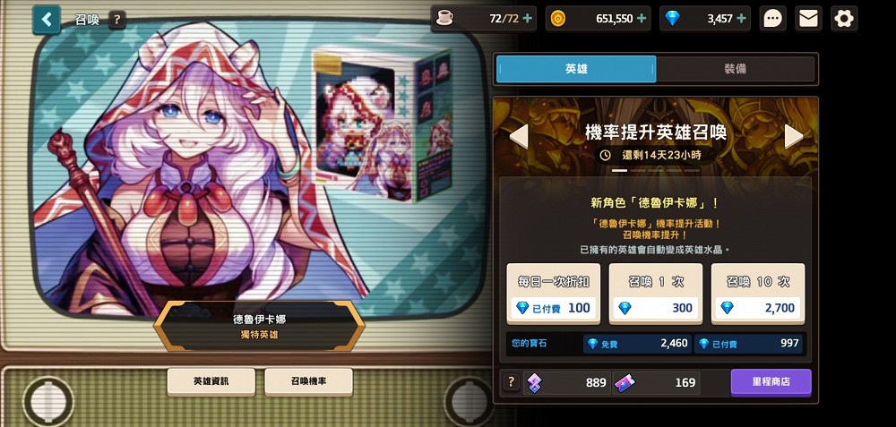 本次更新推出戰士英雄「德魯伊卡娜」。她是可以在老虎與人類兩種型態之間自由變換的稀有白虎獸人。她喜歡動植物,但動物們卻很害怕她並臣服於她驚人的力量之下。德魯伊卡娜與其專屬武器「愛的教訓」、蘭兒、奈里以及蘇熙已經在召喚機率提升活動中等你囉!