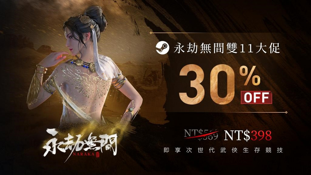 紅遍全球的60人動作競技遊戲《永劫無間》日前公佈全球銷量已突破六百萬大關,遊戲官方同時宣佈即將開啟11.11七折優惠周,原本Steam售價569元的遊戲屆時僅需398元即可入手, 398元的史上最低價格讓玩家大呼良心,表示是入坑的好機會。