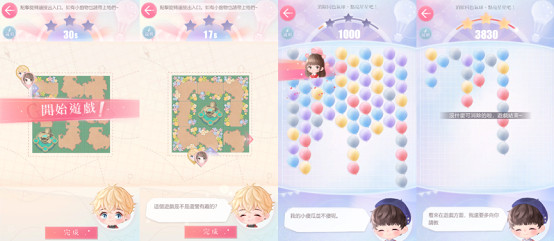 而在遊樂景點「花園迷宮」中,玩家必須在規定時間內旋轉道路方塊,和「他」一起找到迷宮出口。在某些關卡裡,地圖上會出現小動物,若使小動物也抵達終點,將能獲得更高評價。在11月30日開放的「繽紛氣球」遊戲中,玩家點擊3個或以上的同色氣球即可將其消除,而點擊與「他」相關的驚喜氣球還能獲得額外分數加成!