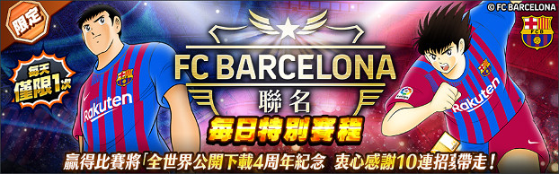 日本KLab株式會社旗下對戰型足球模擬遊戲《足球小將翼:夢幻隊伍》,為紀念全世界公開下載4週年,在12月3日(五)起,於遊戲內登場穿著巴塞隆納足球俱樂部(FC BARCELONA)官方隊服的選手,並推出多項慶祝活動。