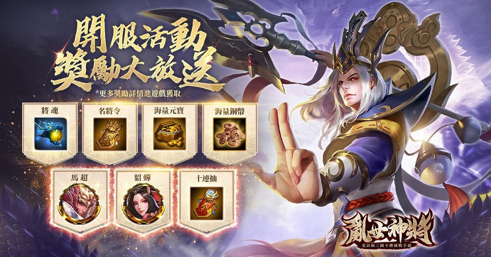 參與事前預約的主公們,在進入遊戲後即可獲取「美人貂蟬」,雙商店(App Store & Google Play)預訂用戶還有加送「十連抽」。登入遊戲後,還有更多豪華虛寶等待領取。