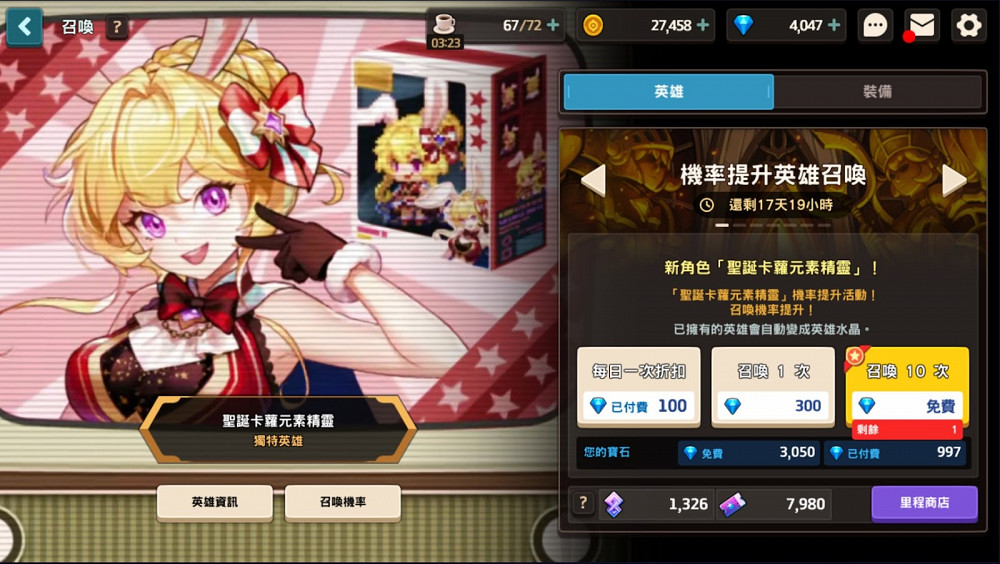 卡蘿與其專屬武器「小星星」、梅麗爾、未來公主、瑞皮娜、拉碧絲以及比安卡已經在機率提升英雄召喚活動中等你囉!