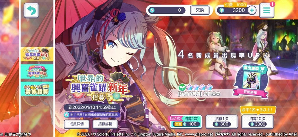 《世界計畫 繽紛舞台! feat. 初音未來》天天免費十連招募和追加新曲?!一起來度過熱鬧非凡的新年吧!