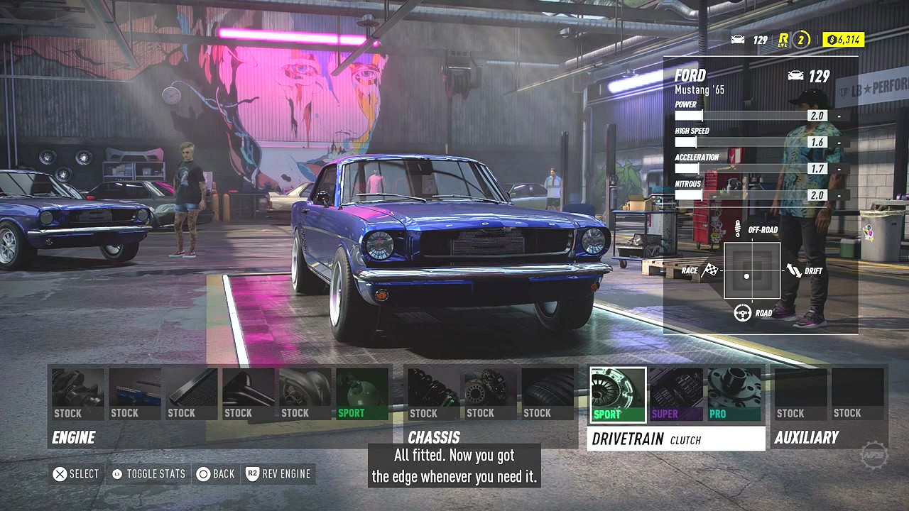 接著就是時候嘗試夜晚的一兩場比賽了。完成任務並且平安無事地返回安全屋,玩家便能了解到當地的競賽、如何安裝氮氣,以及如何使用車庫。