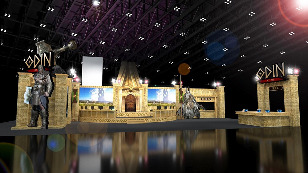 《奧丁:神叛》以北歐神話故事背景為主視覺,逼真還原華麗且不失莊嚴的的奧丁神殿外,並於現場特別打造出擁有「6米高的3D索爾雷神之槌」;除此之外,亦設有拍照區、兌獎區、歡迎區,以及玩家熱烈期盼的遊戲試玩區!