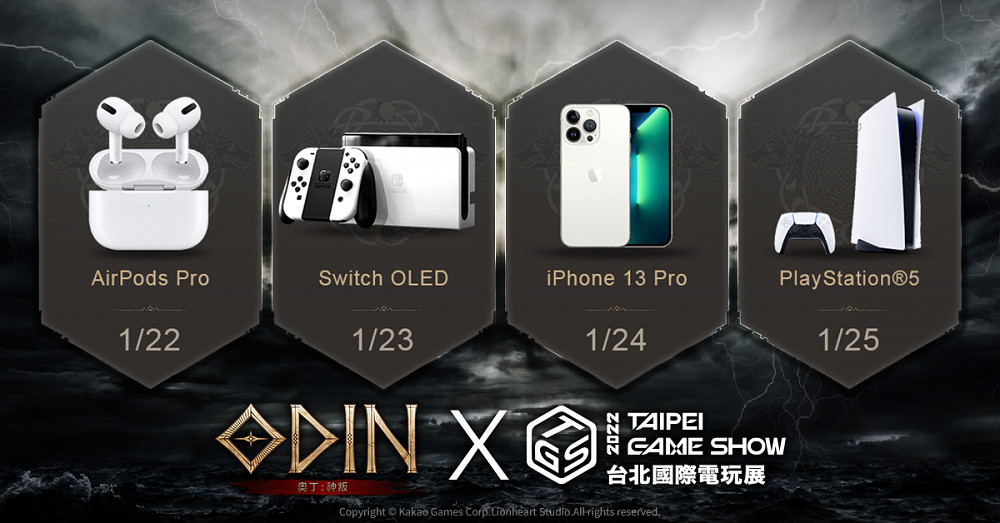 由Kakao Games發行Lionheart Studio製作的《奧丁:神叛》將參加於1月22日(六) 至1月25日(二)期間,在南港展覽館1館所舉辦的「台北國際電玩展 Taipei Game Show(TGS)」。除了是《奧丁:神叛》首次在台灣正式亮相外,其展場風格更是符合《奧丁:神叛》的大作風範!也是此次展場中最受玩家矚目的最大攤位。 (大會舞台攤位號碼:J518)