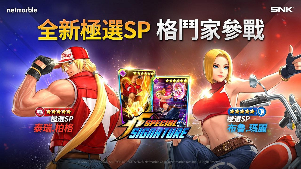 網石公司(Netmarble Corporation)今(27日)宣布,旗下熱門RPG手機遊戲《THE KING OF FIGHTERS ALLSTAR》推出更新,2名全新SS格鬥家 – SS泰瑞.柏格與SS布魯.瑪麗登場。即日起至2月16日止,玩家可蒐集新加入的格鬥家與特殊戰鬥卡。