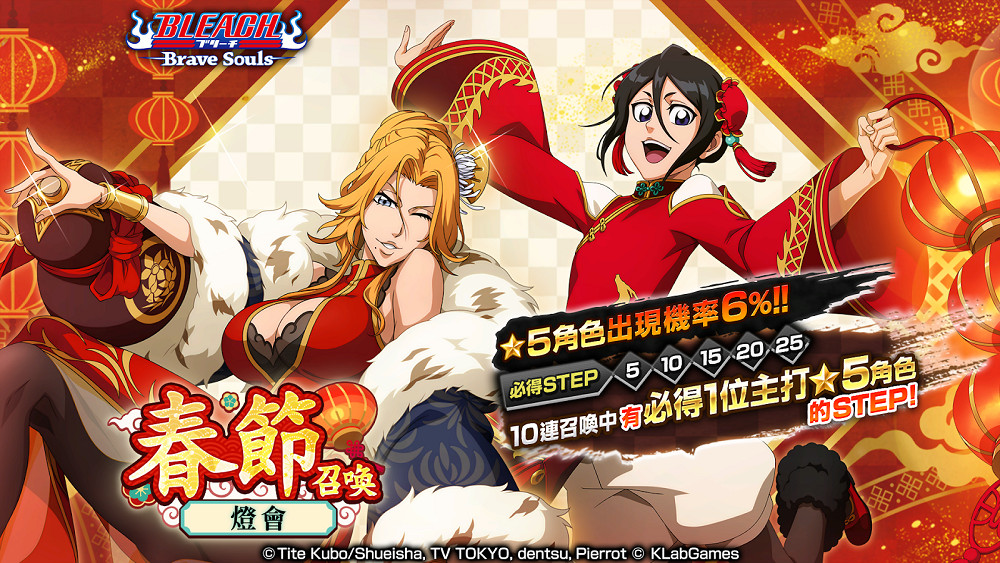 KLab 株式会社(總部:東京都港區、代表取締役社長:森田英克、以下稱「KLab」)旗下集BLEACH死神之大成,對應PC、智慧型裝置的3D動作遊戲《BLEACH: Brave Souls》宣布,日本時間1月31日(一)16:00起推出「春節召喚―燈會―」。此外,今年為了慶祝春節,還將同時舉辦「春節活動」以及限定活動「露琪亞的現世報告任務!」。