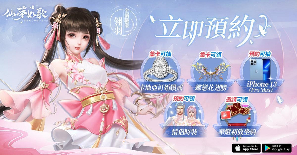主打甜戀暖心修仙的手機遊戲《仙夢如歌》(iOS / Android)即將在台灣、香港、澳門地區推出,現已開放官方事前預約及雙平台預訂活動,並同步宣佈遊戲代言人「郭雪芙」。凡是參加事前預約及雙平台預訂的玩家,就有機會獲得 卡地亞Destinée訂婚鑽戒 以及 iPhone 13 Pro Max(天鋒藍) 等豪華禮品。