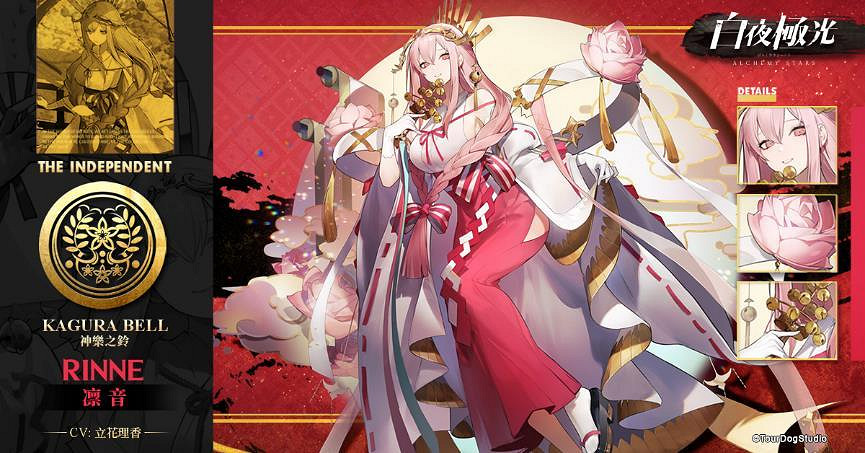 6星,屬性火,稱號神樂之鈴;是雲島的巫女,卻一直被將軍利用。本性善良,個性禮貌且有教養,但有些小腹黑。