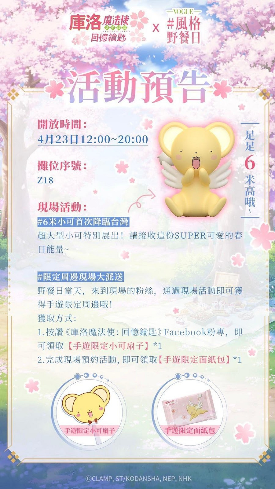 此外,遊戲也將參加4/23(六)的「2022 VOGUE風格野餐日」活動,現場還會有巨型小可登場,這個週六就來現場打卡,與小櫻共度美好回憶吧!