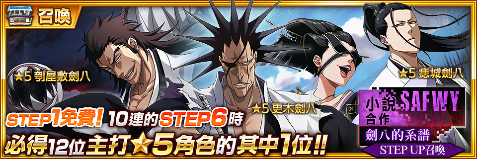 將推出小說SAFWY合作ver.更木劍八、痣城劍八、刳屋敷劍八登場的「小說SAFWY合作STEP UP召喚―劍八的系譜―」!