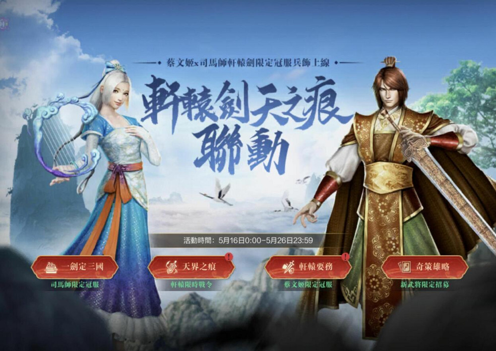 聯動已經開啟,如果你也喜歡《軒轅劍三外傳:天之痕》和《真·三國無雙 霸》這次聯動合作!請一起加入三國戰場,化身真三國、真軒轅,感受割草的快感!
