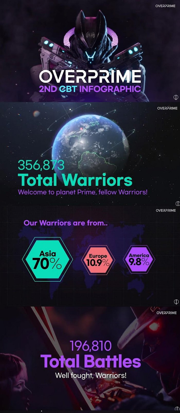 除了展示多元成果的剪輯片段,玩家還可前往《Overprime》官方網站(https://overprime.netmarble.com/)、YouTube頻道(https://www.youtube.com/c/OverPrime)、臉書粉絲專頁(https://www.facebook.com/Overprime-100751268210310/)與官方Steam(https://store.steampowered.com/app/1531430/Overprime/)查看第2次CBT的其他數據,包含最多戰鬥參與者、最常使用PvP技能、最多助攻紀錄與最多勝利玩家等。