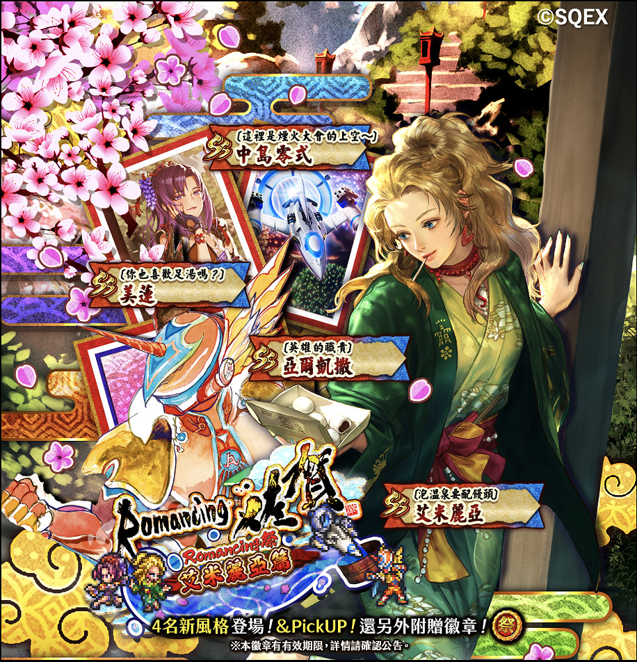 趁著佐賀縣合作活動,本次亦同時召開兩檔召喚「Romancing祭 艾米麗亞篇」與「Romancing祭 柯蒂莉婭篇」。玩家將有機會從中獲得能感受到日本風情的限定風格。