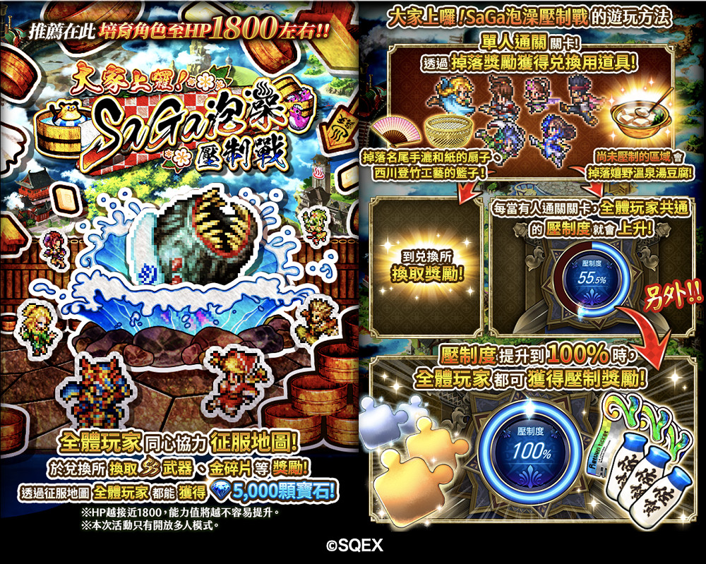 大家上囉!SaGa泡澡壓制戰開放期間:2022/06/10 9:00 ~ 06/30 08:59(地圖部分區域將陸續開啟,詳情請見遊戲內公告)