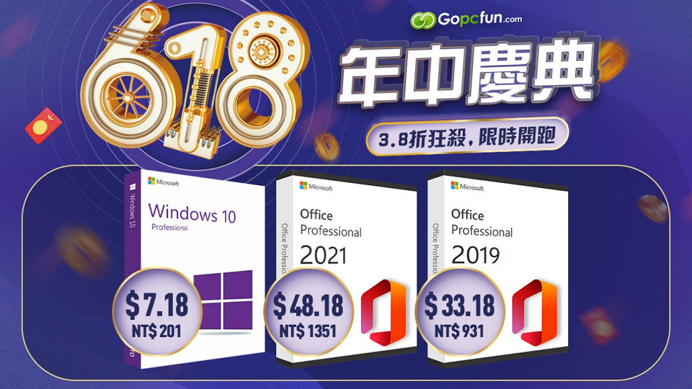 微軟最受歡迎的軟體,現在給你最低價!日常辦公離不開的Office 2021,官方售價高達$439.99!這在如今的經濟形式中,無疑是一筆巨大的開支,但是在Gopcfun的 「618年中大促銷」,最新款的Office 2021專業增強版僅需$48.18(約NT$ 1352),活動升級,購買越多,優惠力度更大,最低只需要$15.24(約NT$ 427)一臺!最受歡迎的電腦作業系統Windows 10 專業版最低也只需要$6.18(約NT$ 173),就可以買回家!快來和你的家人,朋友或是同事一起購買多臺電腦授權的,超大優惠一起享!