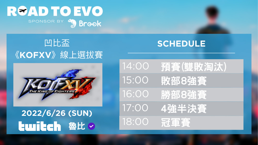 在逐漸解封的全球防疫趨勢之下,格鬥比賽的最高殿堂EVO將於8月5日至7日於美國拉斯維加斯盛大舉辦,《拳皇》系列最新作《拳皇15》(下稱KOF15)首度列為EVO正式比賽項目,此項目台灣不乏許多此項目的好手,今年正是最好在世界舞台上嶄露頭角的機會!台灣遊戲週邊品牌Brook多年來多次藉由舉辦比賽、贊助選手等支持台灣格鬥電競圈,本次贊助賽事職業主播-魯比所舉辦的「凹比盃」線上賽事,於本週日(6月26日)進行線上決賽,冠軍將可獲得機票、住宿、報名費等前往EVO 2022的全額旅費,讓有實力的格鬥選手能有為台灣再拿下一座世界冠軍的機會!