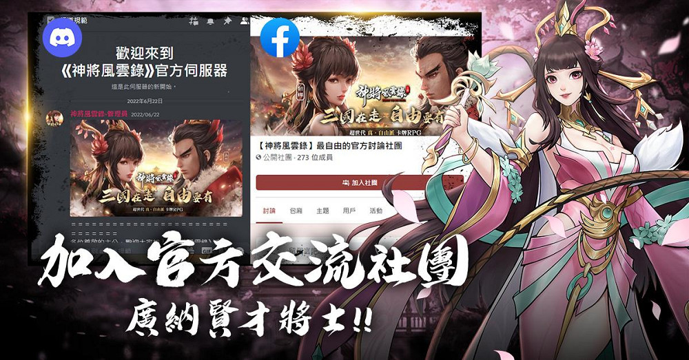 官方FB社團與Discord開通,誠邀主公加入廣納賢才將士!