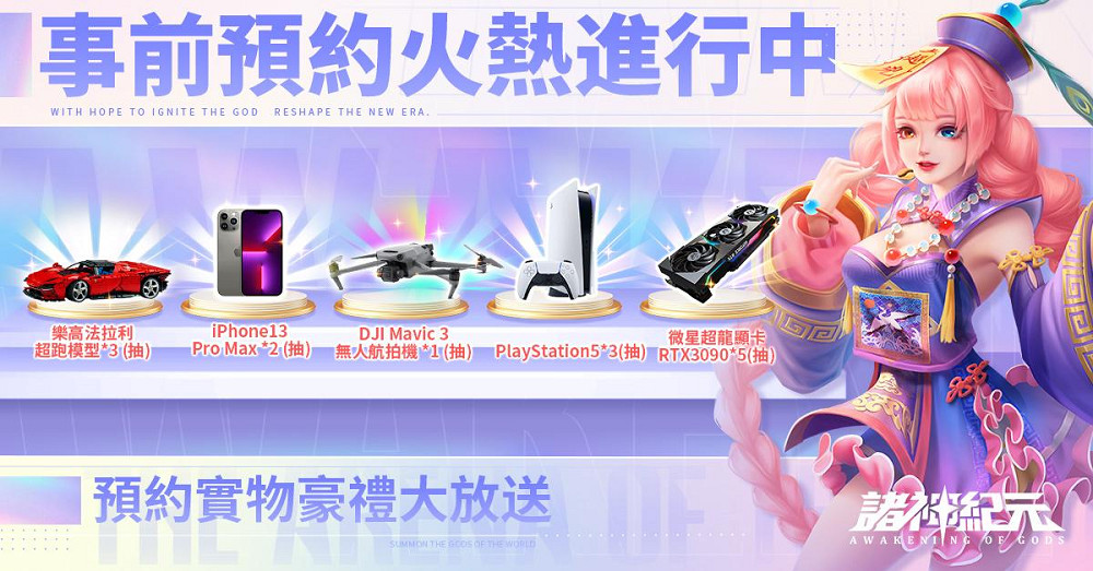 《諸神紀元》已開啟事前登錄活動,超豐富的加碼實體獎勵等你解鎖!快邀請身邊好友一起集結天神,參與我們涵蓋iPhone 13 Pro Max、DJI無人航拍機、樂高法拉利、PS5、微星RTX3090等獎品的抽獎活動吧!更多遊戲資訊和官方福利請追蹤《諸神紀元》官方粉絲專頁,超多有獎互動等你來參與!