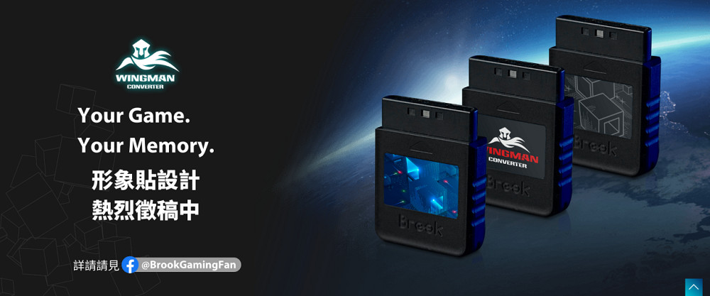 PS2的年代遊戲進度的存儲是存放在獨立的記憶卡當中,當時為了讓玩家們方便辨識該記憶卡是哪個遊戲的存儲,SONY在記憶卡上設計了黏貼貼紙的位置讓玩家自行標註,「Wingman PS2手把轉接器」採用相同的設計,並在官網上附上貼紙刀模檔供玩家自行設計,現正在Brook官方粉絲團舉辦徵稿活動,參與設計及投票皆有豐富獎品提供,詳情請見連結
