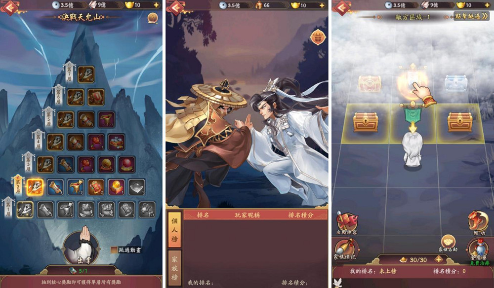 相較前兩種玩法消耗道具就能挖寶,「東瀛之亂」需考驗東家旗下門客的實力,東家需先消耗體力在地圖上選擇相鄰的格子前進,征戰達一定條件之後,東家可使用「輕功」設置事件觸發順序,並進行一鍵探險。