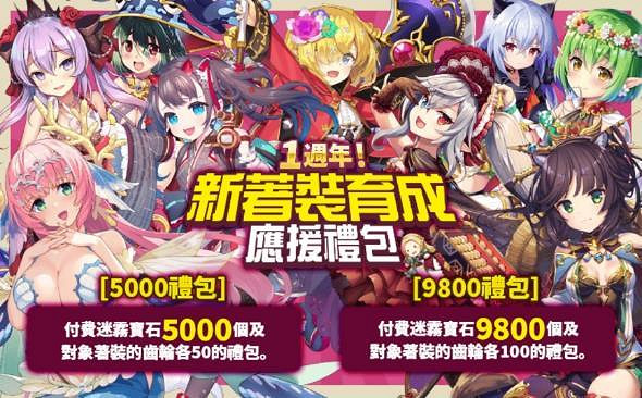 ‧活動內容:附贈1週年Limited扭蛋第1~3彈登場著裝齒輪的育成道具禮包!