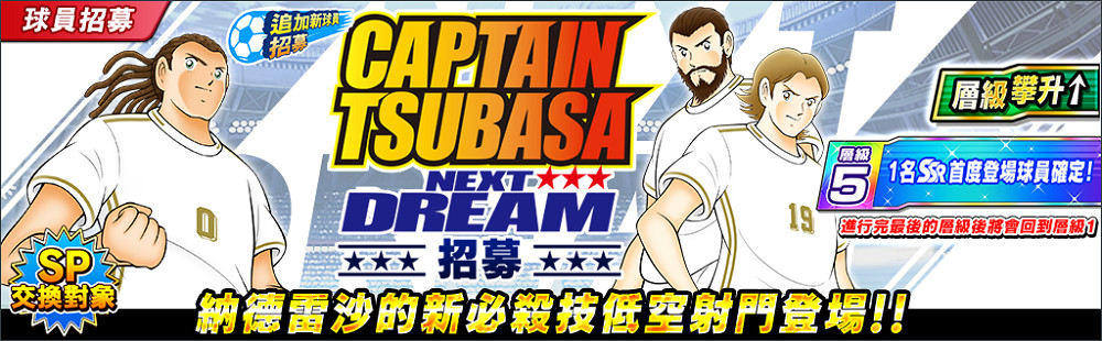 此外,還將同時舉辦「付費限定層級攀升NEXT DREAM招募」(新球員將以主要必殺技Lv.10的狀態登場),可在第10階層獲得能兌換新球員的「NEXT DREAM 球員交換獎章」。